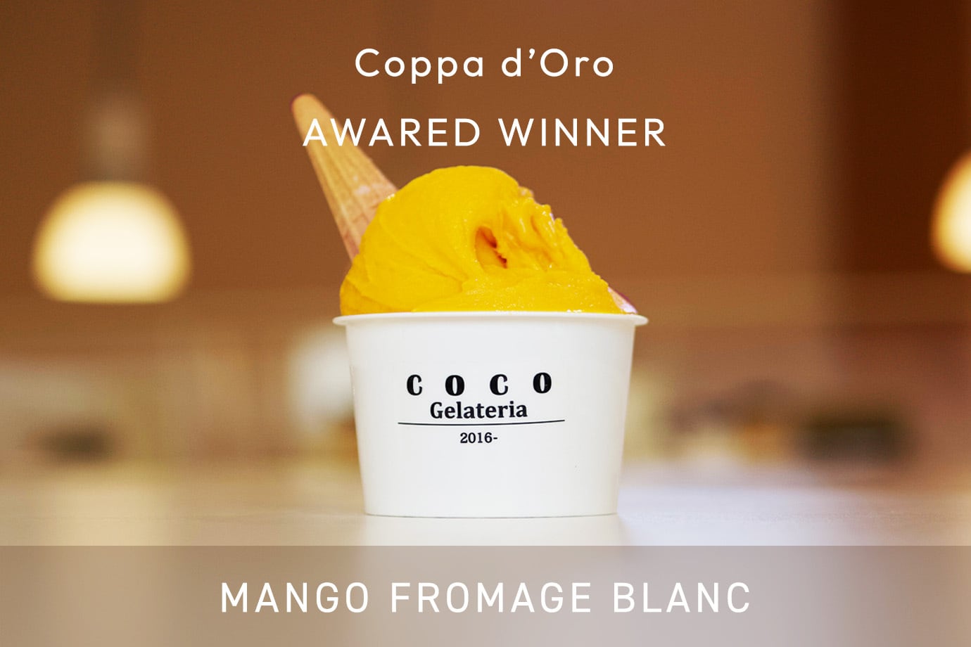 イタリアの世界的なジェラート大会「コッパ・ディ・オーロ(Coppa d'Oro)」で、優勝に輝いたマンゴーフロマージュブラン。