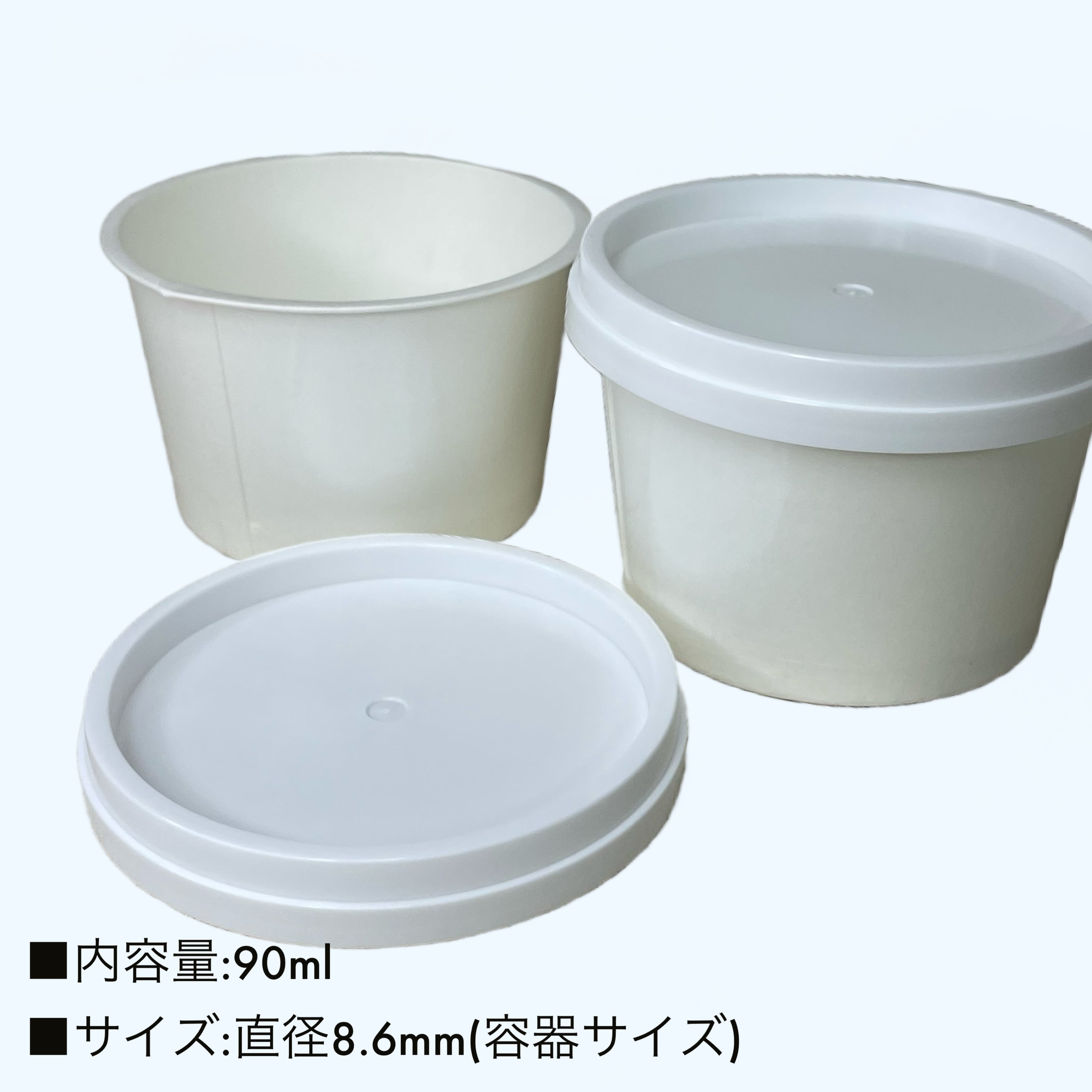 弊社で使用している2Lバルク、90㎖カップ&蓋です。またご要望があればスプーンもお付けすることも可能です。